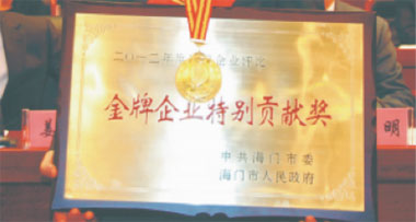 被海门市委市政府授予 “金牌企业特别贡献奖” -